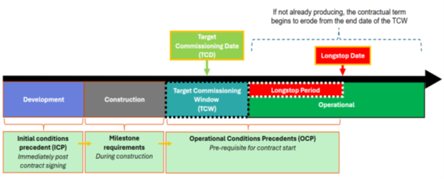 The SAF producer will be required to satisfy certain conditions precedent (including achieving project milestones) before the commencement of the RCM support period and within a “Target Commissioning Window” (TCW) . If the producer is late in delivering the project, the period of revenue support will start to erode.